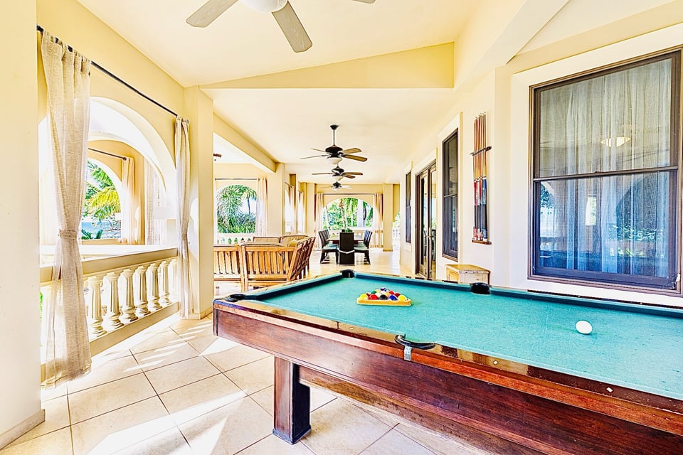 Wrap around terrace, Outdoor dining seats 12, Pool Billiard, and Plenty of Seating