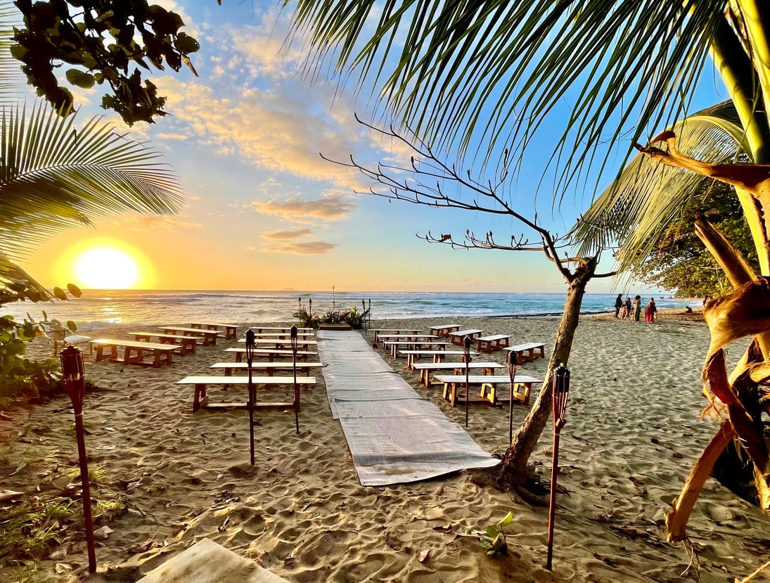 Opt for the Serenity of a Beachfront Affair or the Intimate Charm of a Backyard Celebration at Villa de Zecheo! Revel in the picturesque allure of direct beach access framed by a stunning wooden gate, or bask in the timeless elegance of a century-old Ceiba Tree as the enchanting backdrop for your special day.